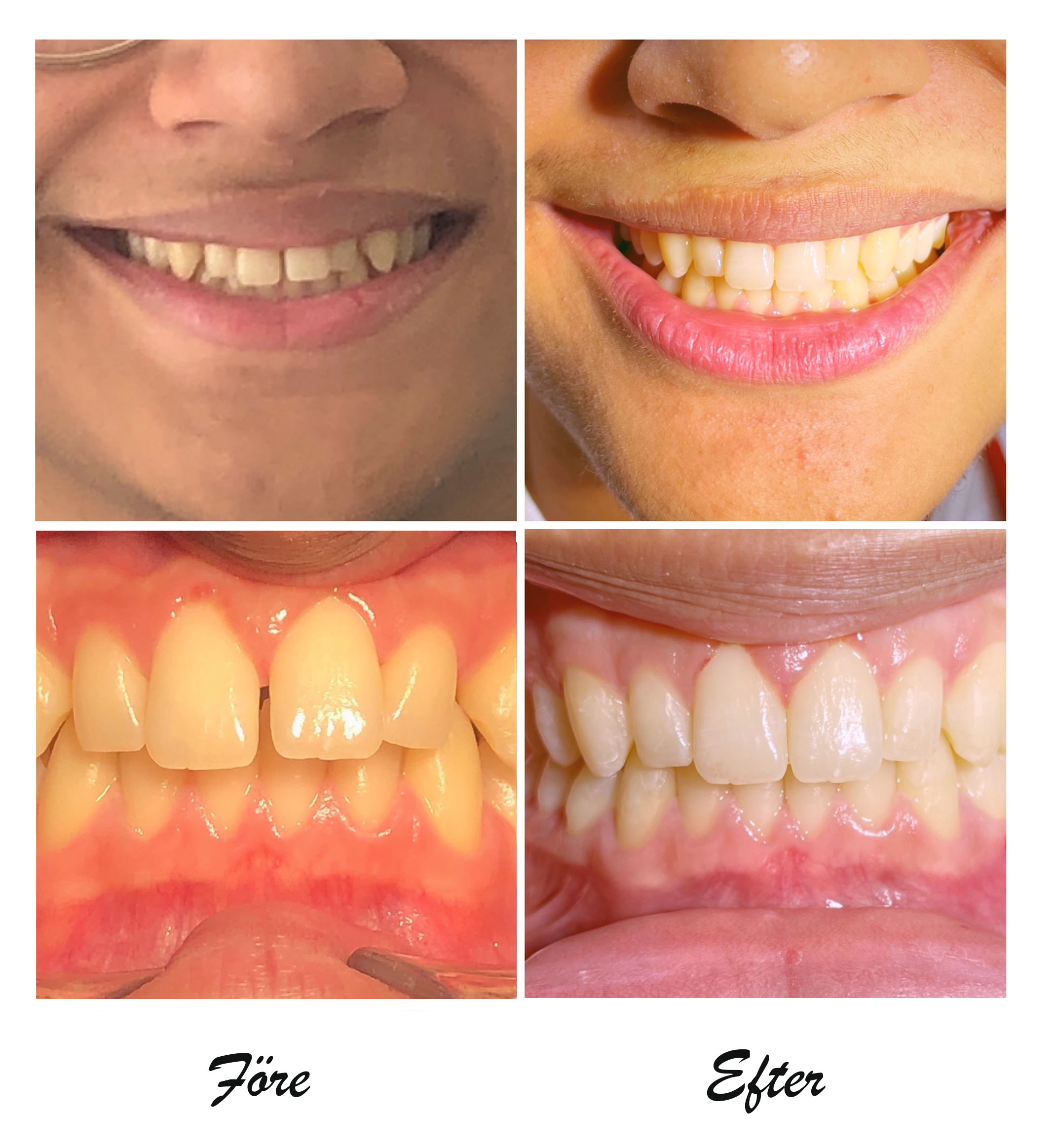 Det kan finnas många anledningar till varför tänderna behöver justeras. Det kan bero på att tänderna är sena, sitter för tätt, för långt isär eller att du lider av bettproblematik. Tillsammans med en av våra tandläkare kommer vi att diskutera vilken behandlingsmetod som är mest lämplig och även dina individuella förutsättningar och förväntningar.